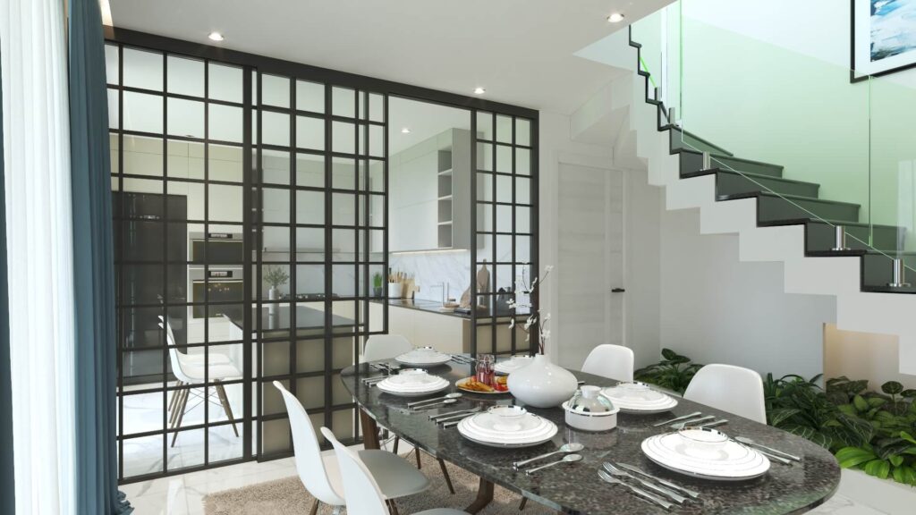 Équipements modernes : Intégration d’appareils de cuisine de pointe, de technologies domotiques et d’équipements de salle de bain haut de gamme.